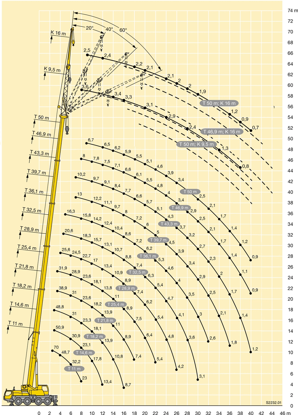 Автокран Liebherr LTM-1070 обладает грузоподъемностью в 70 тонн в 2,5 метрах от своей оси. Кран оснащен телескопической стрелой, которая удлиняется до 50 метров + имеется возможность присоединения удлинителя до 16 метров, что в сумме дает возможность поднимать груз до 66 метров в высоту. Наша компания предлагает услугу аренда автокрана 70 тонн как в Москве, так и по всей России. При длительных сроках аренды, цена на услугу аренда крана 70 тонн обсуждается индивидуально, и учитываются все нюансы и пожелания заказчика.